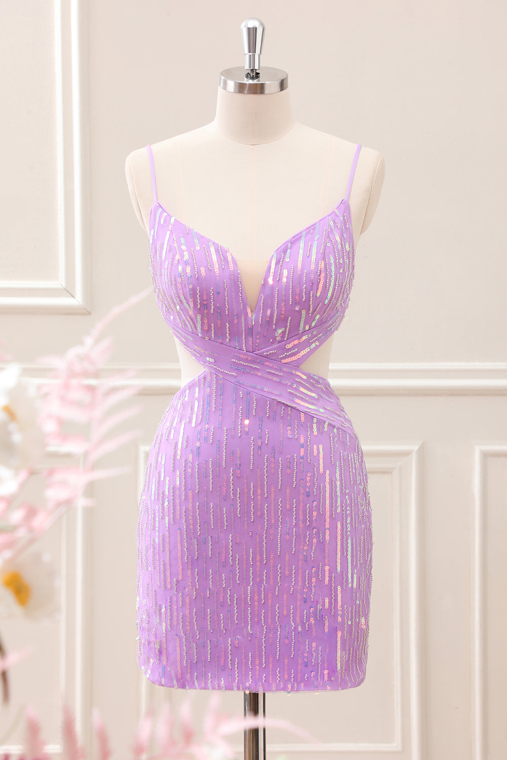 Glitter Lilac Sequined A Line Homecoming Dress