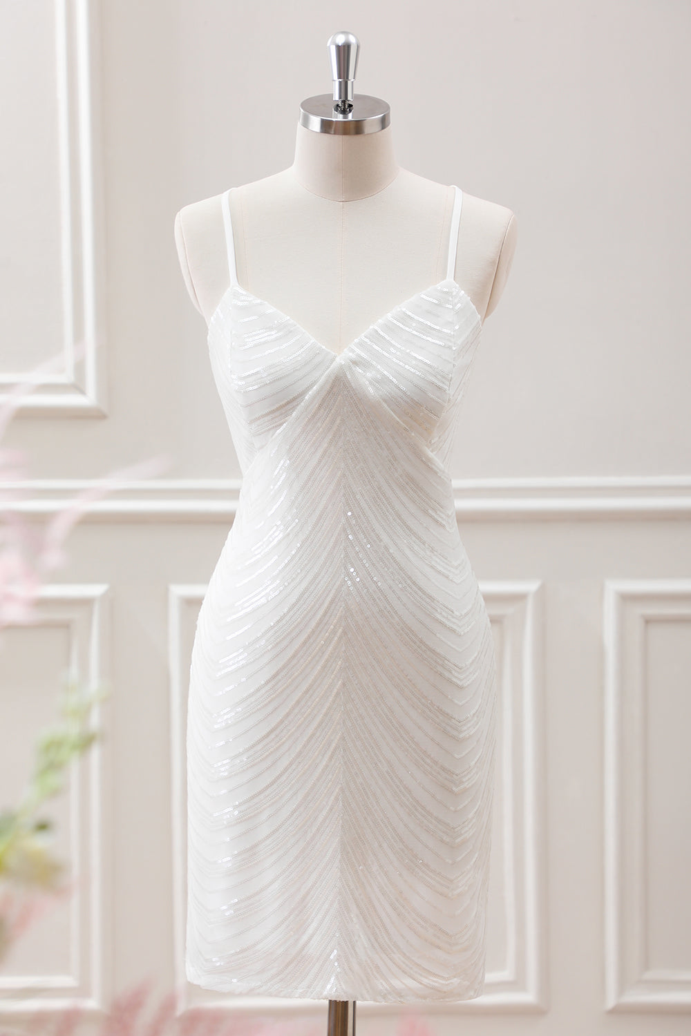 Sparkly White Sequined Spaghetti Straps Criss Cross Back Bodycon Mini Dress